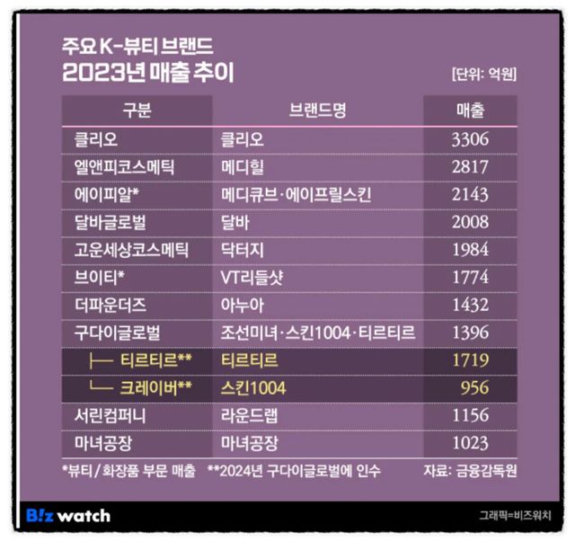 2023년 주요 인디 화장품 브랜드 매출액 ( 출처 : 비즈워치 )