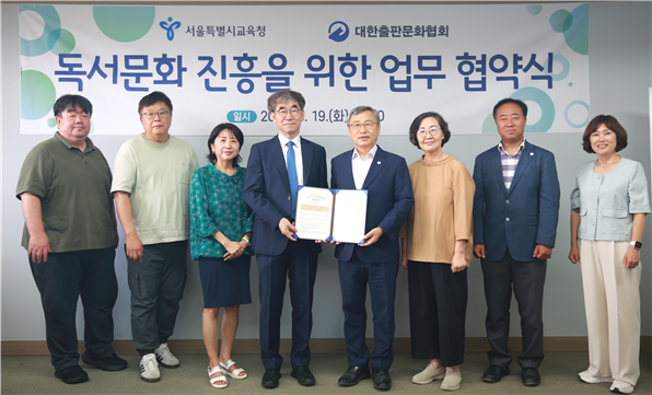 대한출판문화협회는(회장 윤철호) 지난 19일 서울특별시교육청에서 서울특별시교육청(교육감 정근식)과 함께 ‘독서 문화 진흥을 위한 업무협약(MOU)’을 체결했다.