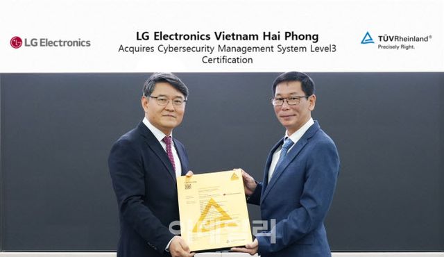 20일 LG전자에 따르면 LG전자 하이퐁 생산법인은 최근 국제 공인시험인증기관 TUV라인란드(TUV Rheinland)로부터 CSMS 레벨3 인증을 획득했다.