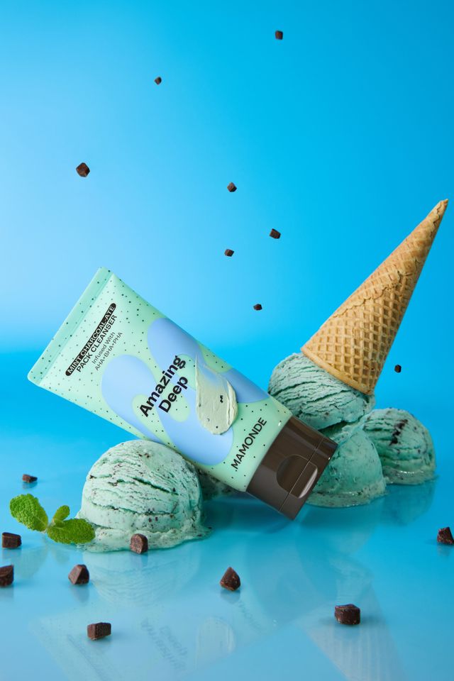 '어메이징 딥 민트차콜릿 팩 클렌저'는 클렌징과 숯 스크럽, 팩 기능을 한 번에 구현한 멀티 클렌저 제품이다. 숯 스크럽이 부드럽게 으깨지며 묵은 각질과 미세 각질, 피지를 효과적으로 제거하고, 단 1회 사용만으로도 모공 속 노폐물을 99% 감소시키는 강력한 세정력을 지녔다. 또한 스킨케어 성분 63.5%를 함유한 미산성 pH의 부드러운 폼 타입으로 세안 후에도 팩을 한 듯 매끈하고 촉촉한 피부 결을 느낄 수 있다. 일명 '화잘먹' 피부를 만드는 윤기, 투명도 개선 등 6개 테스트를 완료했으며, 피부에 롤링 할수록 제형의 컬러가 변하는 재미 요소를 더했다.