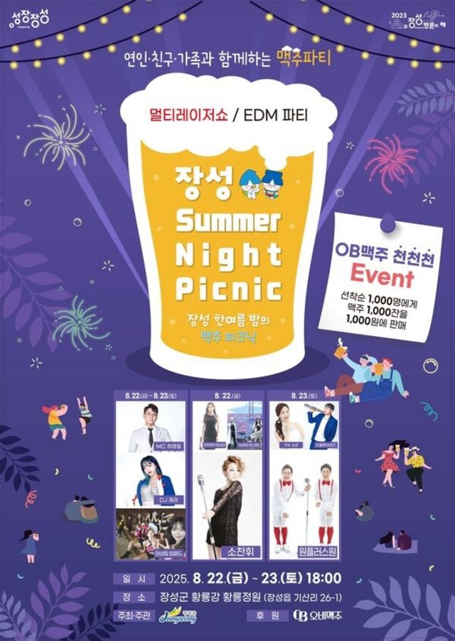 무더운 여름밤을 시원하게 보내기 위한 이번 행사의 가장 큰 매력은 ‘천·천·천 이벤트’다. 행사 기간 동안 1000명에게 생맥주 1000잔을 1000원에 판매한다. 강변 잔디밭에 돗자리를 펴고 단돈 천 원으로 즐기는 시원한 맥주는 이번 피크닉의 상징적인 장면이 될 것으로 기대된다.