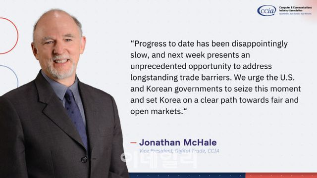 조노선 맥헤일 CCIA 디지털통상 담당 부회장은 별도 성명을 통해 “한국은 미국의 주요 교역 파트너이자 디지털 기술·서비스 채택에서 세계적 선도국가”라며 “자체적으로도 많은 혁신기업과 치열한 경쟁 시장을 갖고 있지만, 장기간 정책적으로 자국 시장을 보호해 미국 기업과 서비스에는 불리하게 작용해 왔다”고 주장했다.