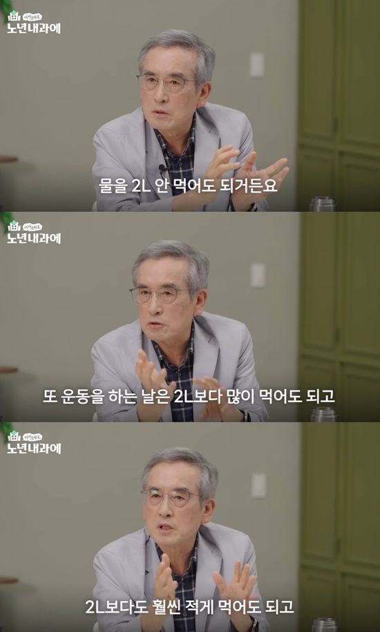 이 교수는 "점점 물을 많이 마시는 분위기가 되는 것은 좋은데, 2L라는 숫자에 집착해서 안 마시면 큰일이 난다고 생각하는 분들이 늘었더라. 물은 필요하면 많이 마시고, 필요 없으면 적게 마셔도 된다. 매일 꼬박꼬박 2L를 마실 필요가 없다는 것"이라고 말했다.