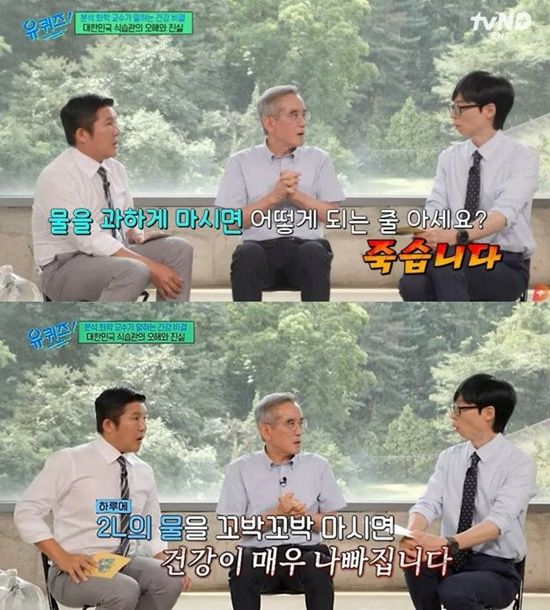 (엑스포츠뉴스 김유진 기자) 예능 '유 퀴즈'에 출연해 '하루에 물 2L를 마시면 해롭다'고 주장했던 이계홍 교수가 해명에 나섰다.