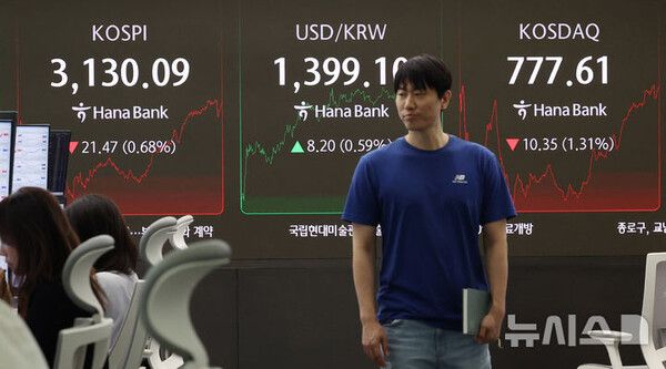 코스피가 한때 2% 넘게 하락하고 원·달러 환율이 1400원에 육박하는 등 금융시장이 출렁였다. 미국 잭슨홀 미팅에서 제롬 파월 연방준비제도 의장의 매파적 발언 경계에 AI(인공지능) 거품론까지 확산되며 위험자산 선호 심리가 위축되면서다.