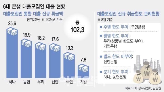 대출모집인을 통한 대출이 전체 주택담보대출의 70% 이상을 차지하고 있어 더욱 문제다. 금감원이 국회 정무위원회에 제출한 자료에 따르면 6대 은행은 지난해 대출모집인을 통해 총 102조 3000억원의 신규대출을 취급했다. 하나은행이 25조 6000억원으로 가장 많았고 농협은행이 19조 9000억원으로 뒤를 이었다. 우리은행이 18조 2000억원, 신한은행이 17조 6000억원이었고 국민은행이 13조 3000억원으로 집계됐다. 시중은행 고위 관계자는 “전체 주담대의 70% 이상이 모집인 대출을 통해 나가고 있다”며 “부동산 중개업소 쪽에서 나오는 건이라서 생활안정자금보다는 주택구입자금대출이 많다”고 설명했다.