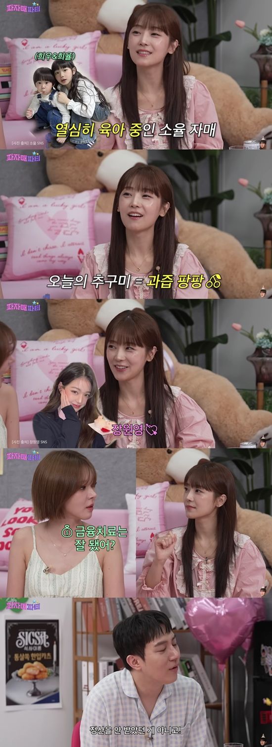 금융치료는 잘 됐냐는 초아의 질문에 소율은 "결혼하고 더 많이 벌었다"라며 "정산을 안 받은 건 아니고 개인적으로 일을 한 게 단체보다 더 많이 받았다"라고 수입에 대해 솔직하게 털어놨다.