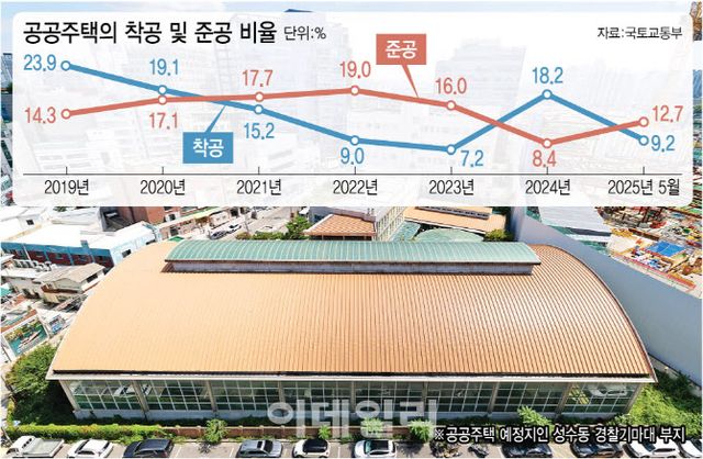 공공주택 공급 필요성은 높아지고 있지만 공공주택 준공 건수는 작년 3만 8002가구로 전체(44만 9835가구)의 8.4%에 불과하다. 2022년엔 19%까지 올라갔으나 3년 연속 감소했다. 올해는 5월까지 12.7%가 공공주택으로 공급됐다.