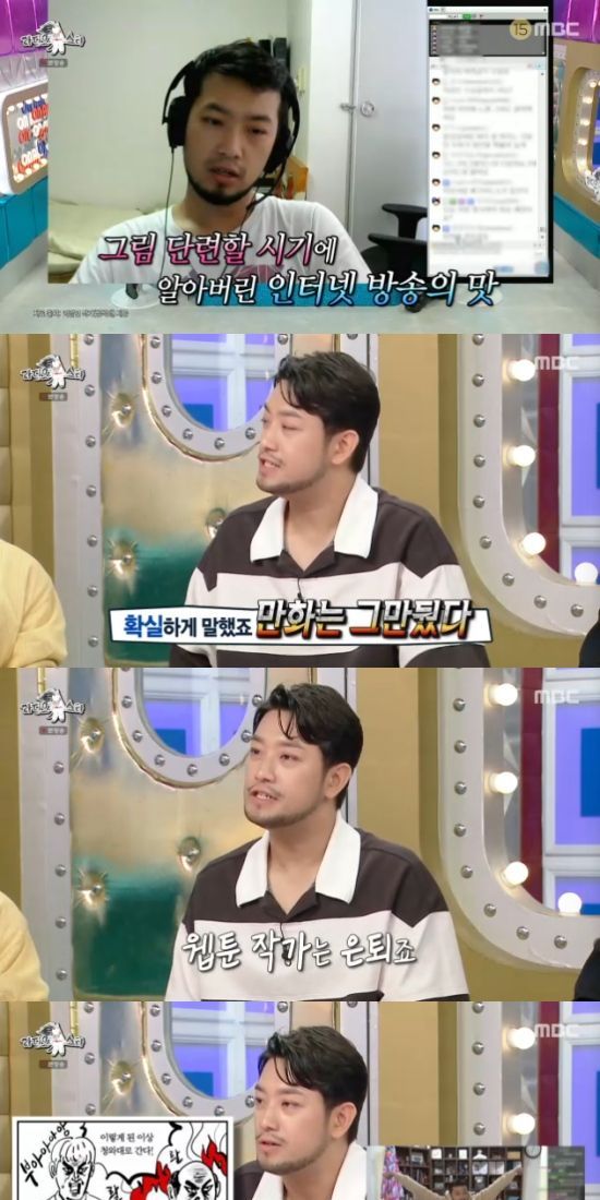 (엑스포츠뉴스 오수정 기자) '라디오스타'에서 침착맨이 웹툰작가 이말년으로는 은퇴를 했다고 밝혔다.