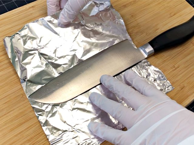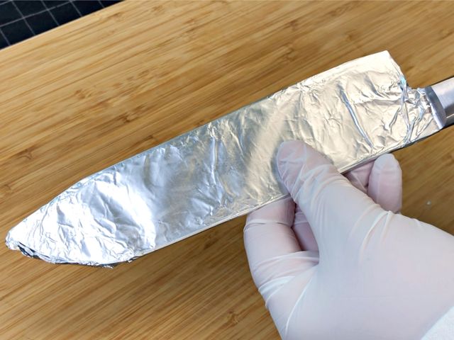 칼을 쿠킹호일로 감싸주세요.