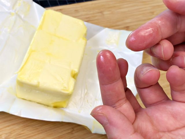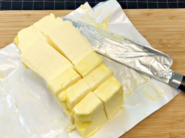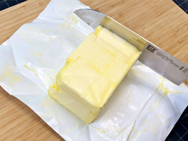 버터를 실온에 잠시 꺼내두면 손질하기 쉽게 적당히 부드러워요.