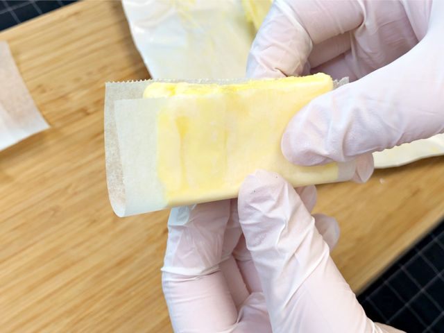 또, 버터를 포장지 위에 올려놓고 손질해서