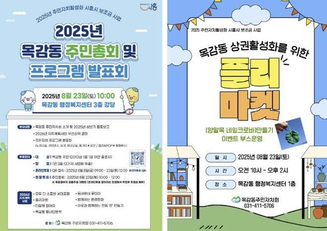 [와이뉴스] 시흥시 목감동 주민자치회는 오는 8월 23일 오전 10시부터 목감동 행정복지센터 3층 강당에서 ‘2025년 목감동 주민총회’를 연다.