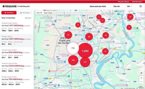 프롭테크 기업 알스퀘어의 베트남 자회사인 알스퀘어베트남이 지도 기반 상업용 부동산 정보 서비스를 정식 출시했다고 21일 밝혔다.
