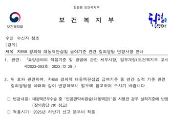 의료기관들은 이번 변경사항을 반영해 하반기 신고 시 대동맥근부수술 중 인공판막치환술을 시행한 사례를 실적에 포함할 수 있다.
