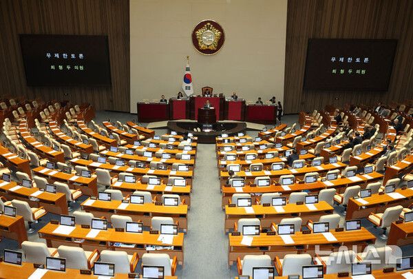 뉴시스 보도에 따르면, 우원식 국회의장은 이날 본회의에서 민주당이 추진하는 EBS법을 상정했고 국민의힘은 즉시 필리버스터로 대응했다.