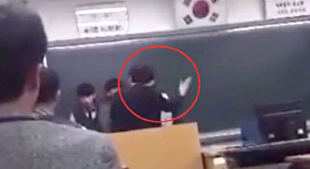 게시자가 올린 18초 길이의 영상에는 교사로 보이는 남성 1명이 칠판 앞에 학생 3명을 세워놓고 이들의 뺨을 양손으로 연달아 때리는 장면이 담겼다.