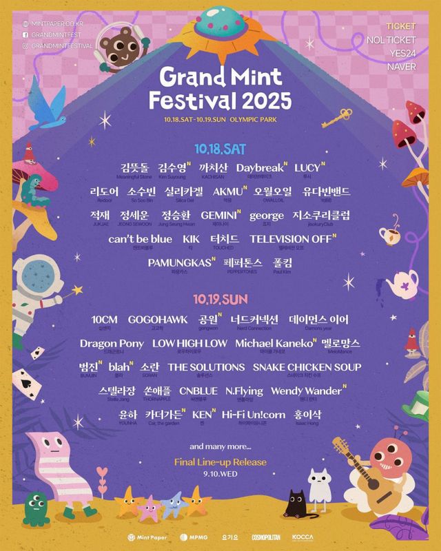 10월 18, 19일 서울 송파구 올림픽공원에서 진행되는 ‘그랜드 민트 페스티벌 2025’ 측이 3차 라인업을 공개했다.