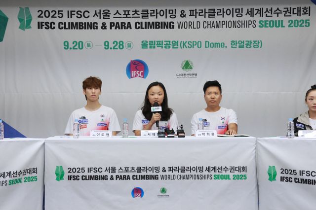 2025 국제스포츠클라이밍연맹(IFSC) 서울 세계선수권대회 미디어데이가 21일 오전 서울 올림픽파크텔에서 열렸다. 2년 마다 열리는 세계선수권은 이 종목 최고 권위 대회로 꼽힌다. 아시아에서 세계선수권이 열리는 건 6년 만이고, 한국에서 열리는 건 처음이다.