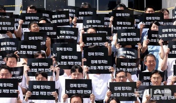 간담회는 국회 통과를 앞둔 노란봉투법과 관련해 법 개정에 따른 영향이 특히 큰 업종 내 기업들의 의견을 듣고 오해와 우려를 해소하기 위해 마련됐다.