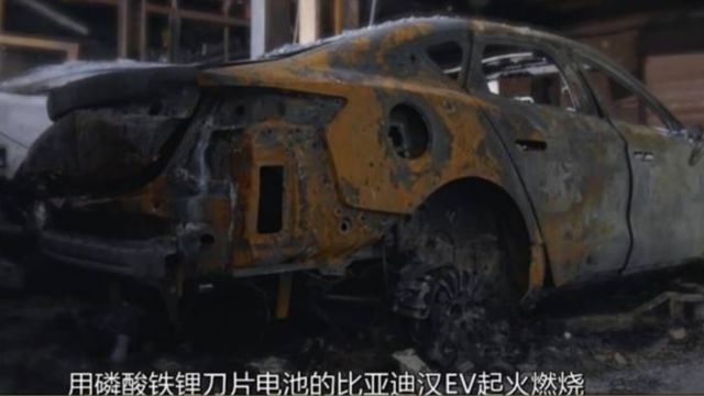 | ▲ 충돌 테스트 후 화재가 발생한 BYD 한(漢) <출처=Understanding the Car Test Field> |
