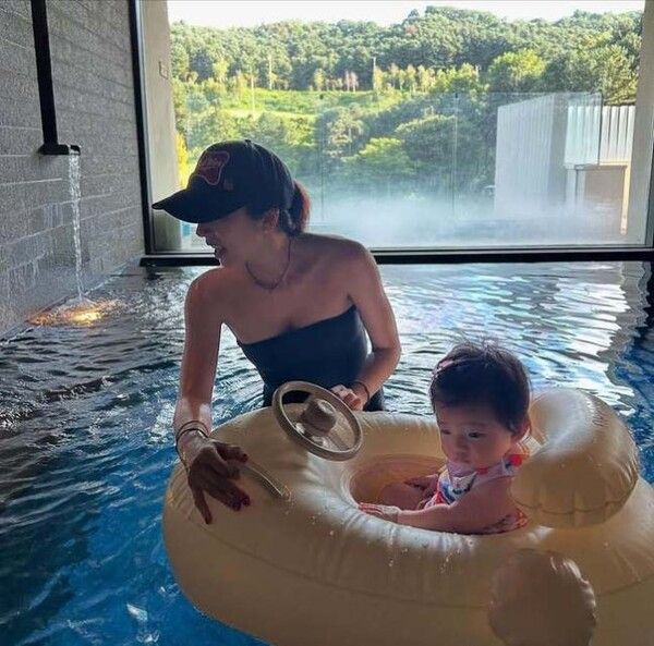사진 속 손담비는 튜브톱 수영복을 입고 딸과 함께 실내 수영장에서 물놀이를 즐기고 있다. 특히, 딸 ‘해이’를 바라보는 그의 눈에서는 꿀이 뚝뚝 떨어지는 듯한 사랑이 느껴져 보는 이들을 미소 짓게 했다.
