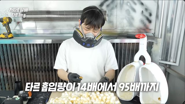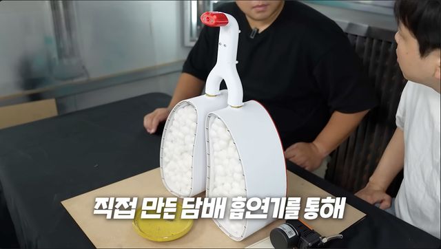 실험 대상은 총 세 가지로 일반 담배, 저타르 담배, 그리고 궐련형 전자담배로 나눴다. 긱블은 실험에 앞서 사람의 입과 폐 구조를 모사한 전용 흡연기를 자체 제작했으며, 각 담배 제품을 100개비씩 흡입시켜 흡연 과정에서 발생하는 타르 축적 정도를 하얀 솜이 어떻게 변하는지 시각적으로 비교 관찰했다.
