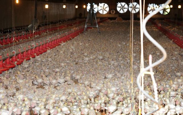 한 육계농가에서 닭들이 작은 축사에 모여있다. / 뉴스1