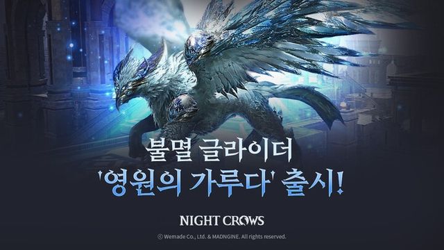 [이뉴스투데이 백연식 기자] 위메이드가 서비스하고 매드엔진에서 개발한 대작 MMORPG ‘나이트 크로우’가 21일 대규모 업데이트를 통해 불멸 등급 글라이더 ‘영원의 가루다’를 공개했다.