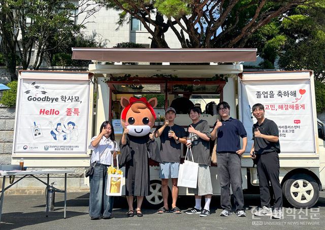 [한국대학신문 이용현 기자] 경남대학교 대학일자리플러스센터(거점형)는 20일 학위수여식을 맞이한 졸업생들의 성공적인 사회진출을 응원하고자 ‘Goodbye 학사모, Hello 졸특’ 커피차 행사를 운영했다.