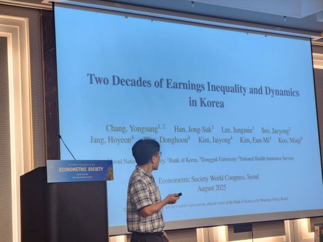 21일 서울 삼성동 코엑스 세계경제학자대회(ESWC 2025)서 열린 ‘행정 데이터 속 소득 역학의 국가 간 비교’ 세션에서 한종석 동국대학교 교수는 지난 20년간 한국 소득 불평등의 연구 결과를 발표했다. 장용성 한국은행 금통위원 등이 참여한 이번 연구결과 발표는 글로벌 소득불평등 프로젝트인 ‘GRID’의 일환으로, 이번 세션에선 한국 외에도 아일랜드와 대만 등의 데이터 연구 결과도 발표됐다.