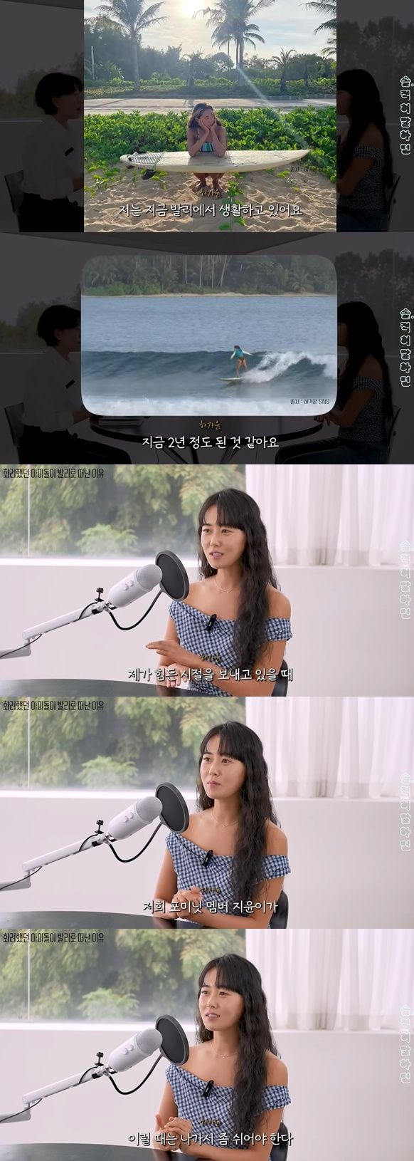 발리로 떠나게 된 계기에 대해서 그는 "힘든 시절을 보내고 있을 때 저희 포미닛 멤버 지윤이가 '이럴 때는 나가서 정신과 마음을 좀 쉬어야 한다'고 해서 따라가듯 (발리에) 갔다가 너무 좋았어서 이렇게 지금까지 살고 있다"고 설명했다.