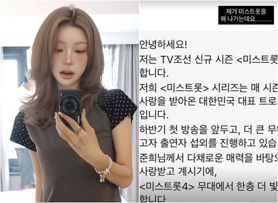 이에 최준희는 메시지를 공개하면서 "제가 '미스트롯'을 왜 나가는데요"라고 거절 의사를 밝혔다.