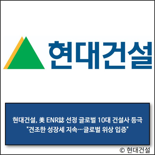 현대건설(000720)이 미국의 유력 건설엔지니어링 전문지 ENR이 발표한 세계 건설사 순위에서 10위를 기록했다고 21일 밝혔다.