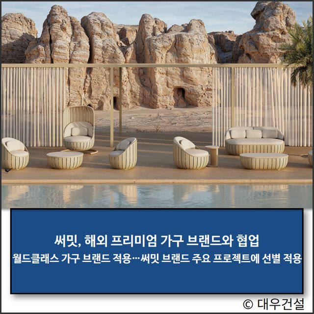 대우건설(047040)이 하이엔드 주거 브랜드 '써밋(SUMMIT)'에 해외 프리미엄 아웃도어 가구 브랜드와의 협업을 통해 단지 내 조경 공간에 고급스러운 라이프스타일을 구현, 예술적 감성을 더한 휴식의 공간을 선보일 계획이다.