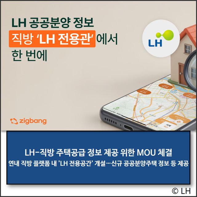 한국토지주택공사(LH)가 지난 20일 LH 서울지역본부에서 ㈜직방과 주택공급 정보 제공을 위한 업무협약을 체결했다.