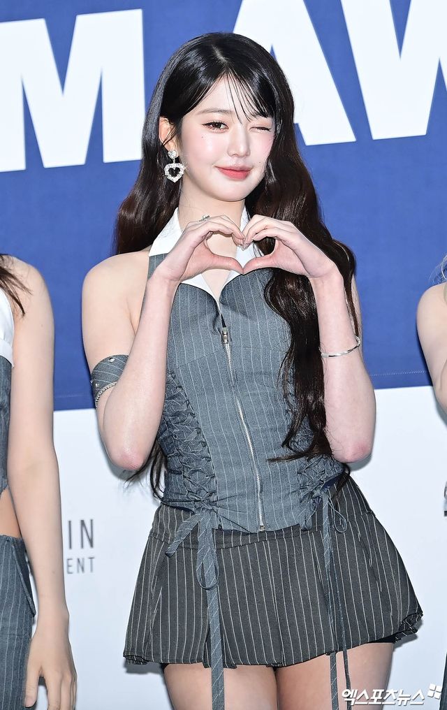 이날 행사에 참석한 아이브 장원영이 포토타임을 갖고 있다.
