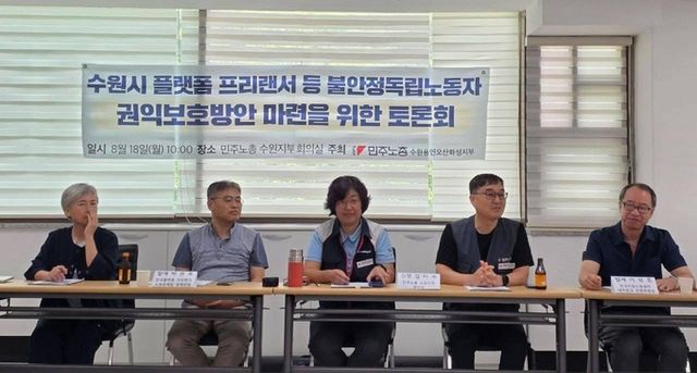 [와이뉴스] 수원특례시의회 윤경선 의원(진보당, 평·금곡·호매실)이 8월 18일 민주노총 수원지부 회의실에서 열린 「불안정 독립노동자 권익보호 토론회」에 참석해 플랫폼 노동자, 프리랜서 등 불안정 독립노동자의 권익 보장 필요성을 강조했다.