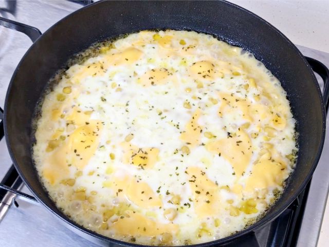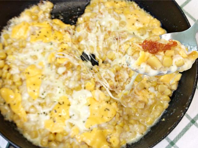 고소하고 달달하니 풍미 가득한 콘치즈가 완성됐어요.
