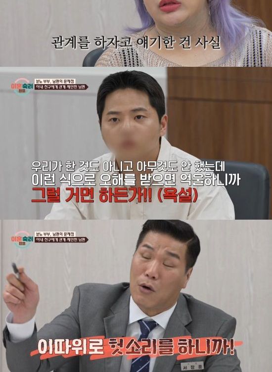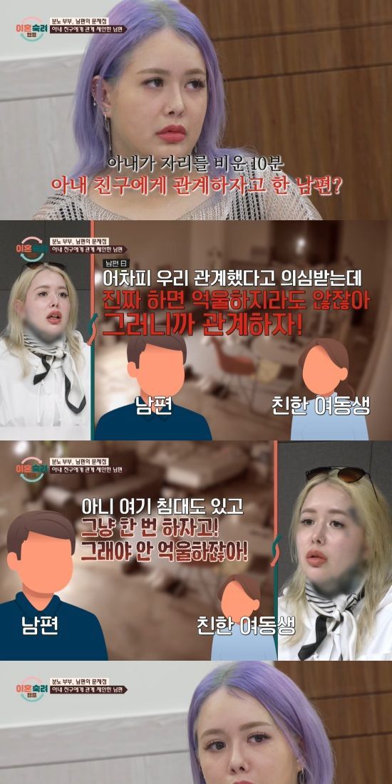 아내는 "남편이 '어차피 우리 관계했다고 의심받는데 진짜 하면 억울하지라도 않잖아. 그러니까 관계하자"고 말했다고 전해 충격을 안겼다.
