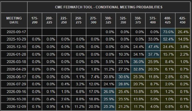 이런 상황에서 시장은 다시 연내 1~2회 금리인하 정도 가능할 것으로 보고 있는 상황이다. 시카고상품거래소(CME) 페드워치툴에 따르면 장 마감 시점 연방기금금리 선물시장은 9월에 기준금리가 25bp 인하될 확률을 전날 82.4%에서 73.6%로 낮아졌다. 12월 추가 인하 가능성도 70%정도 반영하고 있다.