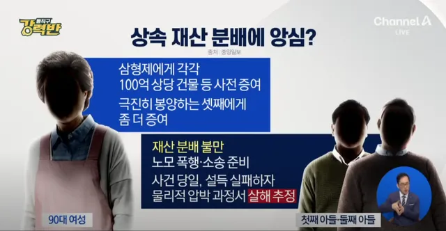 극진히 봉양하는 셋째 좀 더 증여에 불만으로 살해 추정
