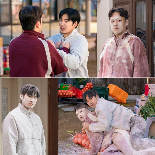 이어 밀가루 범벅이 된 가람과 흥남의 모습이 눈길을 끈다. 바닥을 구르며 유치한 몸싸움을 벌이는 이들의 모습이 폭소를 유발한다.