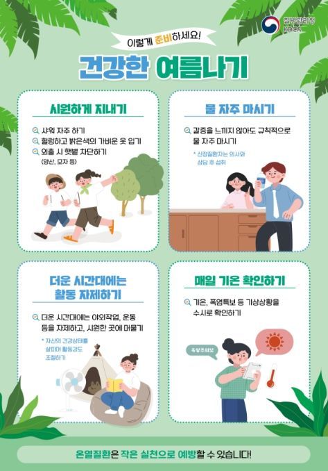 임승관 질병관리청장은 “6월 말부터 고온 환경이 조기·장기간 발생하면서 온열질환자 수가 과거 대비 크게 증가했다”며, “이에 따라 기온 자료를 활용하여 폭염 대비 건강피해를 막기 위한 선제적 대비를 하겠다”고 밝혔다. 또한 “기상청에서 8월 말 낮 기온을 30~34℃로 전망하고 있어, 지속적인 온열질환 예방 건강수칙 준수가 필요하다”고 강조했다.