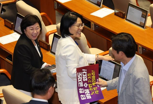 민주당은 한동안 입법 드리이브를 이어갈 전망이다. 24일엔 노란봉투법(노동조합 및 노동관계조정법 2·3조 개정안)과 25일 상법 개정안 처리가 예정돼 있다. 노란봉투법은 근로자와 노동자의 법적 범위를 확대하고 파업 노동자에 대한 손해배상 청구를 제한하는 게 핵심이다. 상법 개정안은 집중 투표제를 도입하고 분리 선출 감사위원을 확대하는 내용을 담고 있다. 국민의힘은 두 법이 기업 부담을 늘릴 것이라며 필리버스터에 나설 계획이다.
