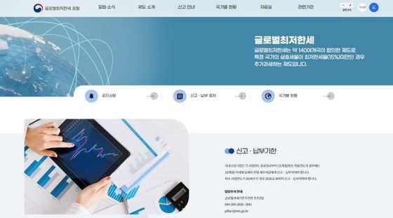국세청이 개통한 '글로벌최저한세 포털' 메인 화면(그림=국세청) |