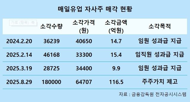 매일유업은 임직원 성과급 지급을 위한 재원 마련을 위해 매년 자사주를 소각해 왔지만, 주주가치 제고를 위한 자사주 소각은 이례적이라는 평가다.