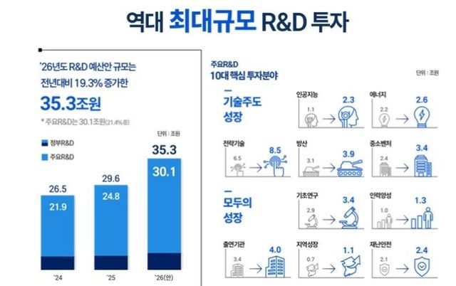 또 내년도 정부 R&D 예산안 35조 3000억 원을 편성하는 것에 대해 이 대통령은 "대한민국의 미래를 위한 과감한 결단이자, 과학기술 강국으로 도약하기 위한 정부의 분명한 의지를 담았다"고 밝혔다.