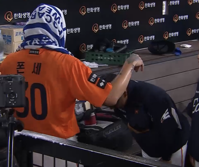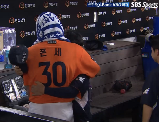 폰세가 7회 투구를 마치고 마운드를 내려오자 양상문 투수 코치가 환한 표정으로 그에게 다가갔다. 이어 오른손을 가슴에 얹고선 고개를 숙여 경의를 표했다. 장난기가 섞인 행동이었지만, 에이스의 위용을 보여준 외국인 투수에게 고마움을 표현한 것이다. 폰세는 양상문 코치와 끌어안아 포옹하며 화답했다.