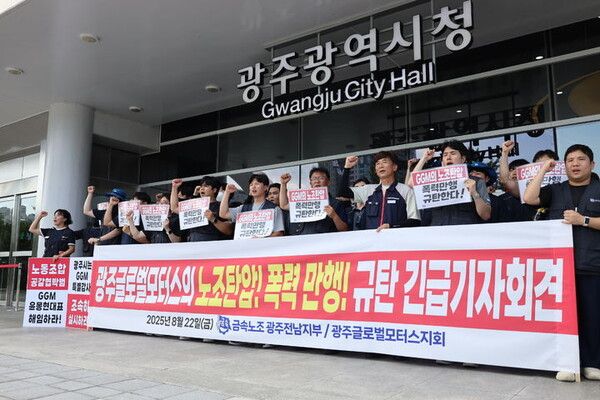 뉴시스 보도에 따르면, 22일 민주노총 전국금속노동조합·GGM에 따르면 이날 오전 광주 광산구 GGM 공장에서 노조는 사측의 1900억원 규모 대출금 대환대출 사태를 규탄하는 손팻말 시위를 벌였다.